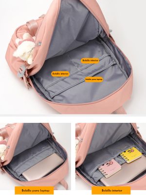 «Lleva todo lo que necesitas con nuestra espaciosa mochila, ideal para el Colegio, la Universidad, los Viajes.»