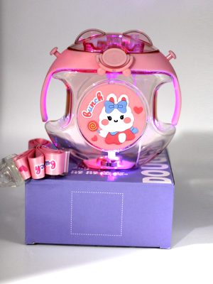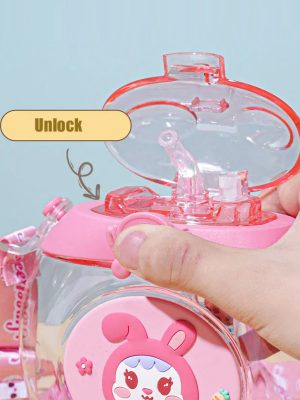 Este hermoso tomatodo portátil kawaii tiene luces con 3 cambios y tiene una capacidad de 450ml, ideal para la escuela, jardín, viajes, etc. Tiene diseño de apertura de un botón, de boca ancha conveniente para llenarla con cubitos de hielo y frutas, contiene anillo de silicona a prueba de fugas y pajilla para beber directamente. Es ligero e incluye un asa para transportarlo y una correa para la mano o el hombro. Fácil de limpiar.
