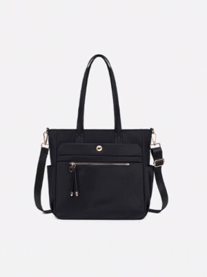 La tote bag Anya es de material Oxford impermeable y cuenta con un amplio compartimento principal que incluye un bolsillo acolchado para laptop hasta 14″, dos bolsillos interiores deslizantes y un bolsillo con cierre. Es ligero y versátil perfecto para el trabajo, universidad o para tus viajes.